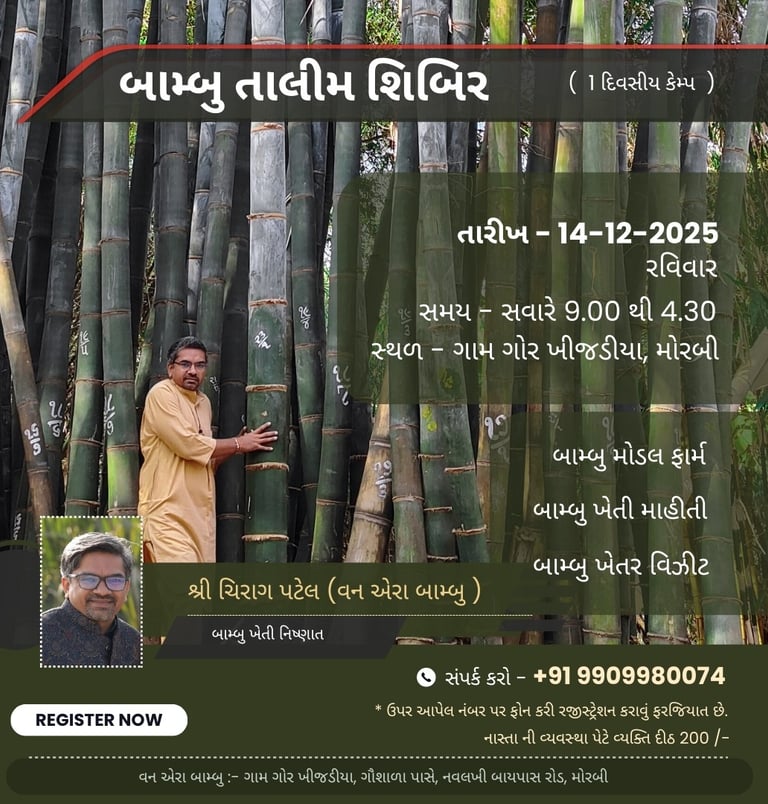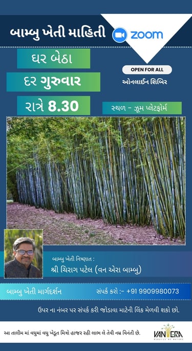 Vanera ટીમ બામ્બુ ખેતી ને સરળતા થી સમજી શકાય એ માટે VanEra Group અલગ અલગ માધ્યમ થી ટ્રેનિંગ પ્રોગ્રામ કરાવતા રહે છે.